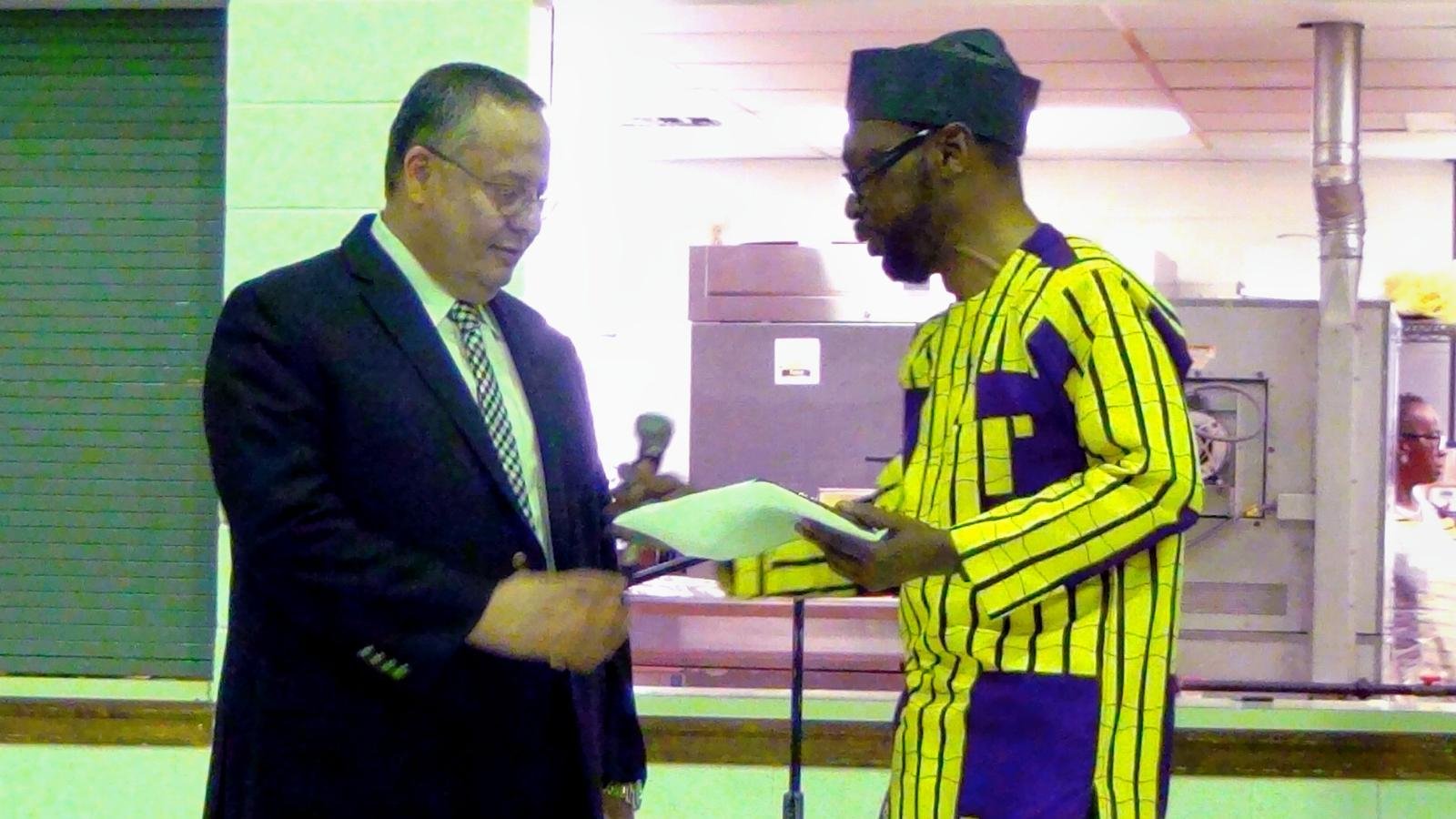 In recognition, of Dr Haytham Albizem of (HeartCare Consultant, LLC in Philadelphia, Pennsylvania, during the ceremony for his humanitarian work with IBPR during his visit to Nigeria with Dr. Michael Ladele in 2017